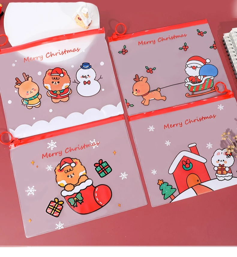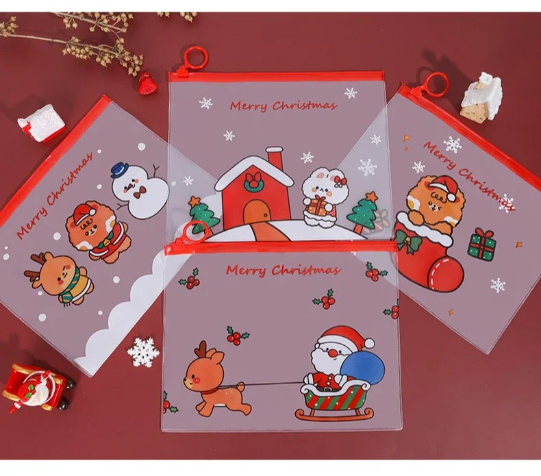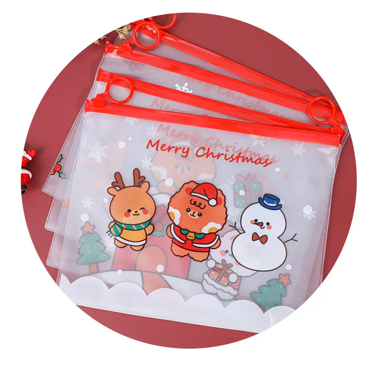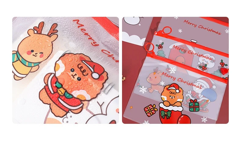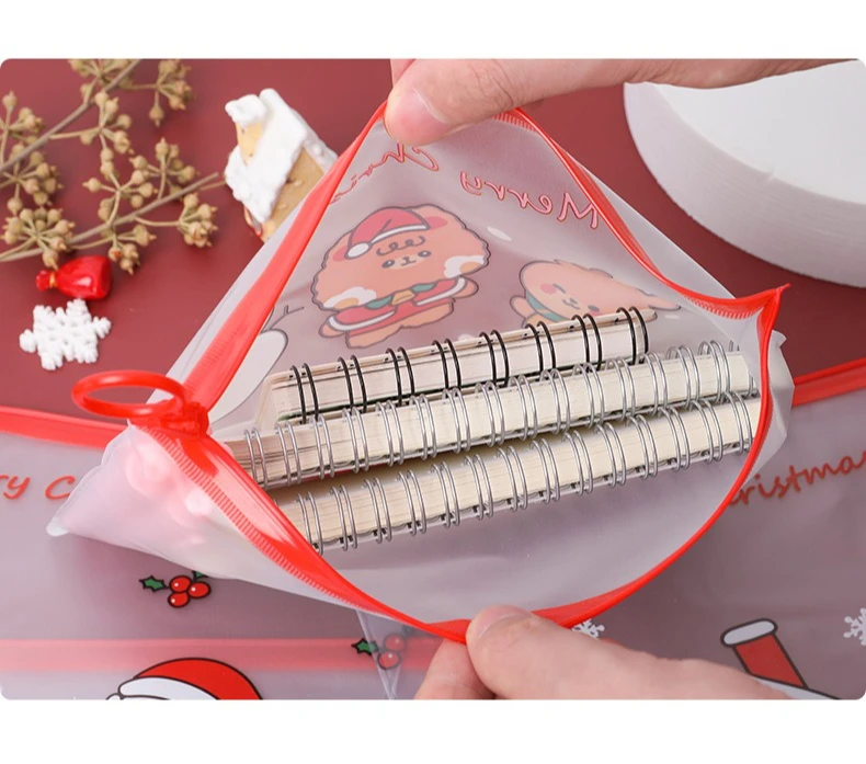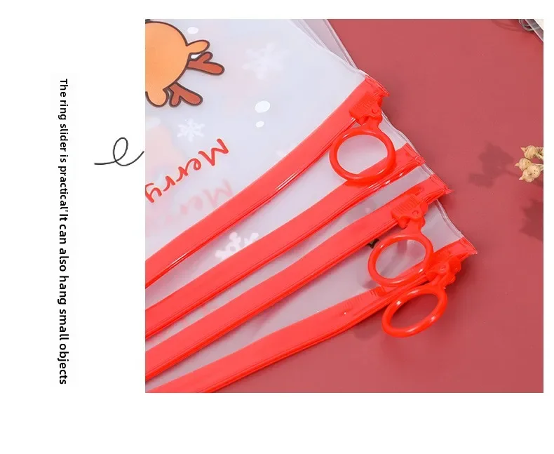 Selling point: Christmas Ring Zip File Bag multifunctional transparent stationery storage bag.