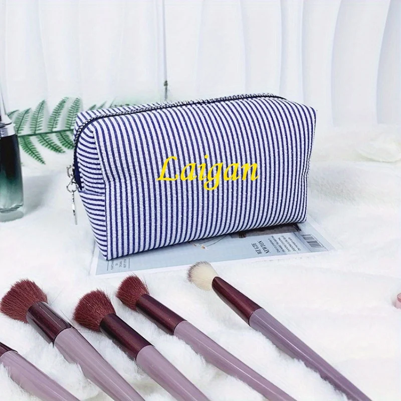 Custom - Embroidered Striped Travel Toiletry Bag - Personalized Cosmetic Portable Polyester Storage for Travel School Dorm or Home