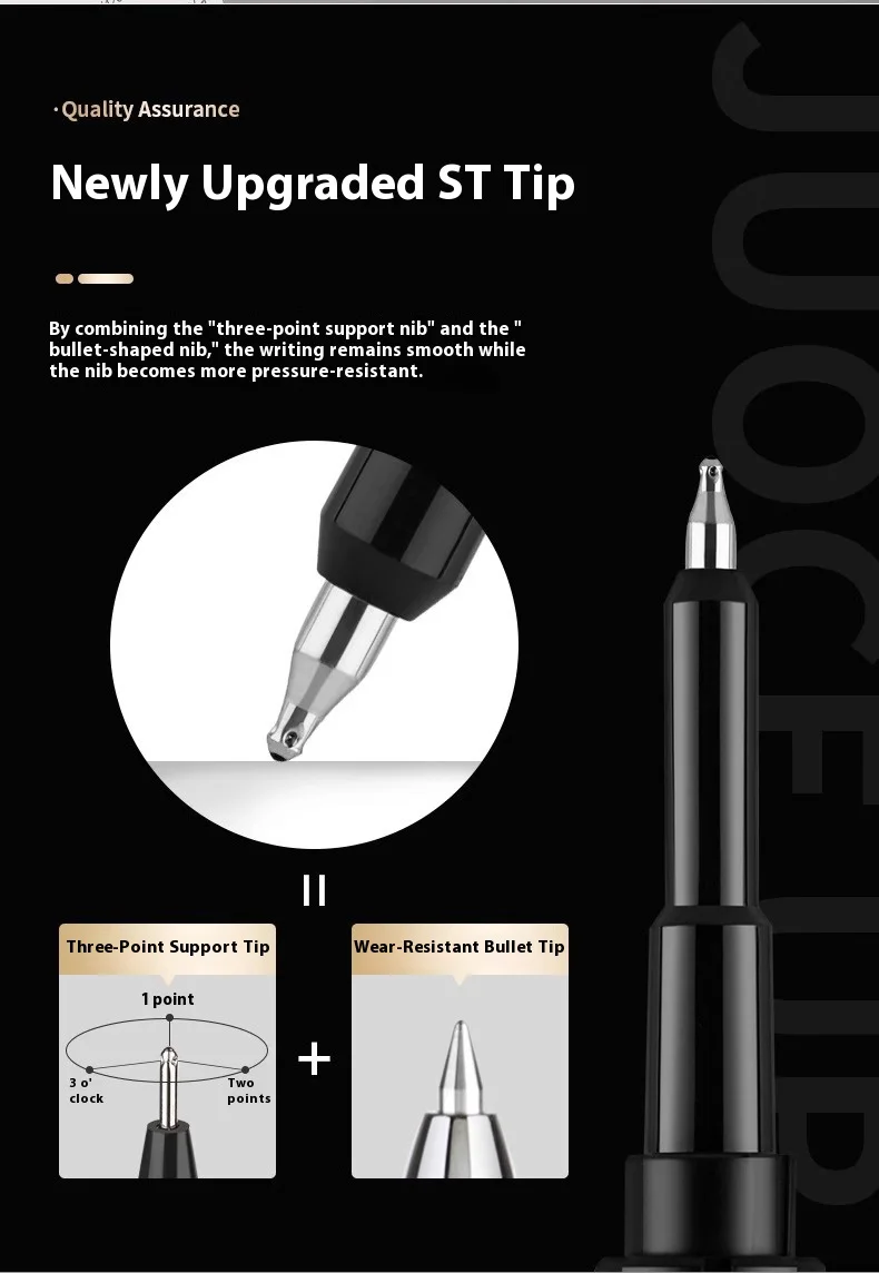 1) Three-point support nib + bullet-tip design: smooth writing and high-pressure resistance.