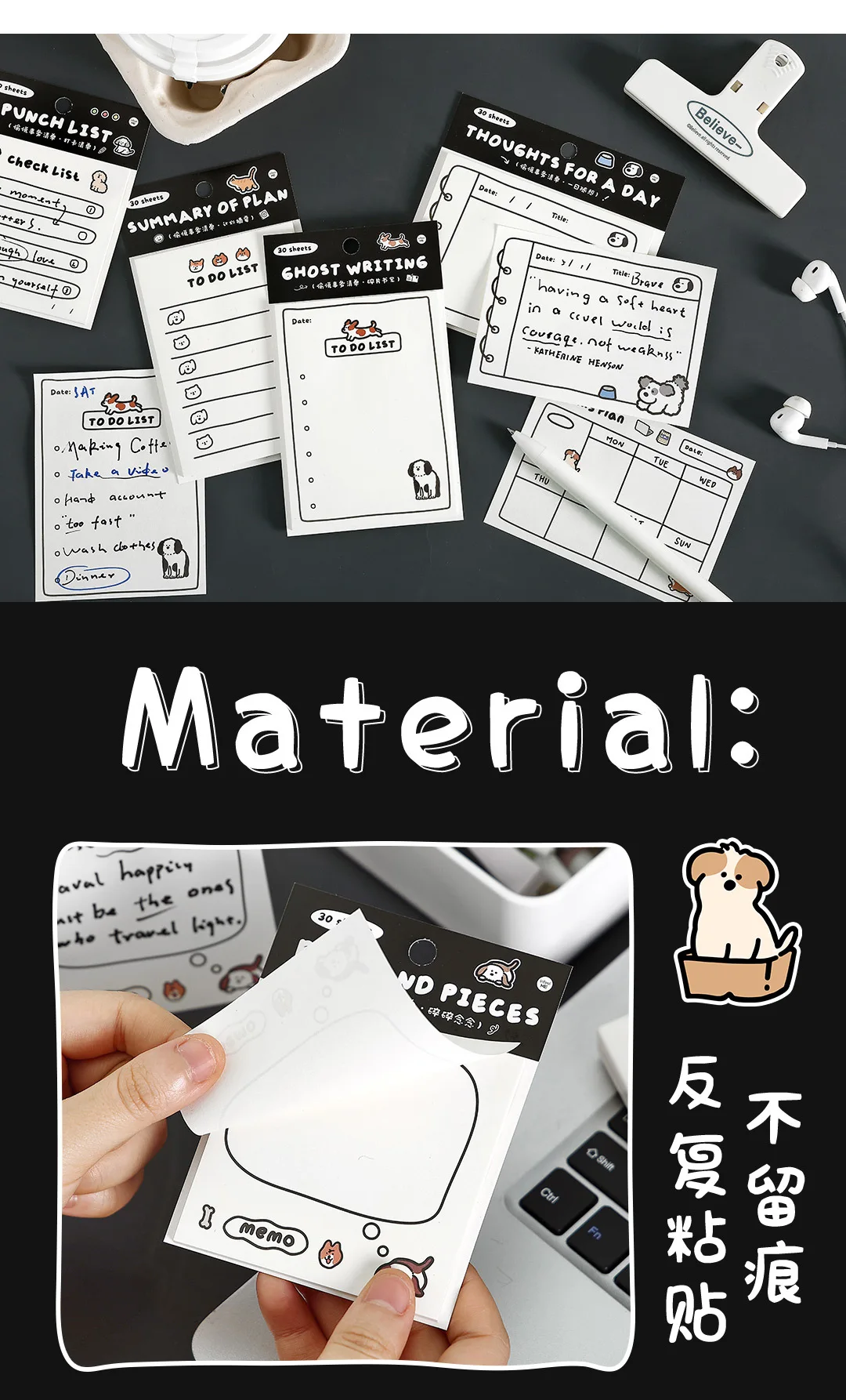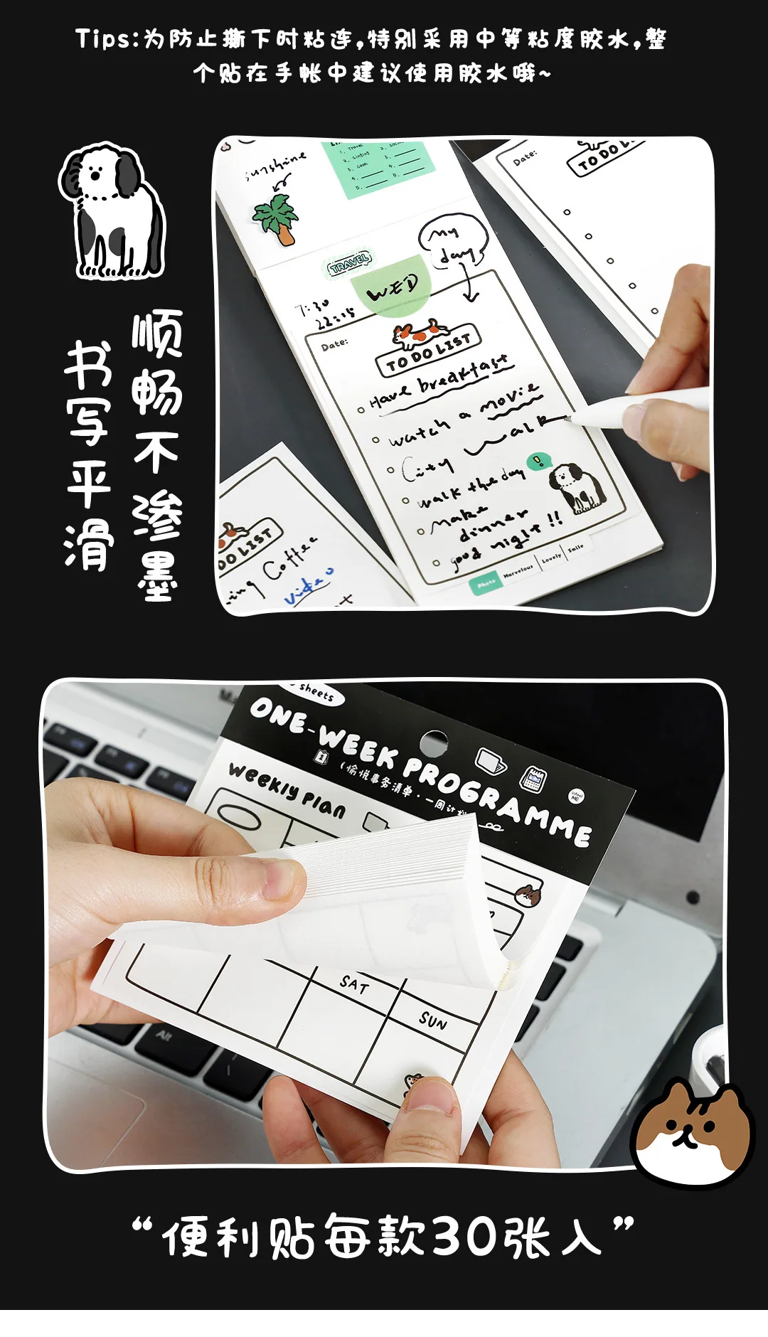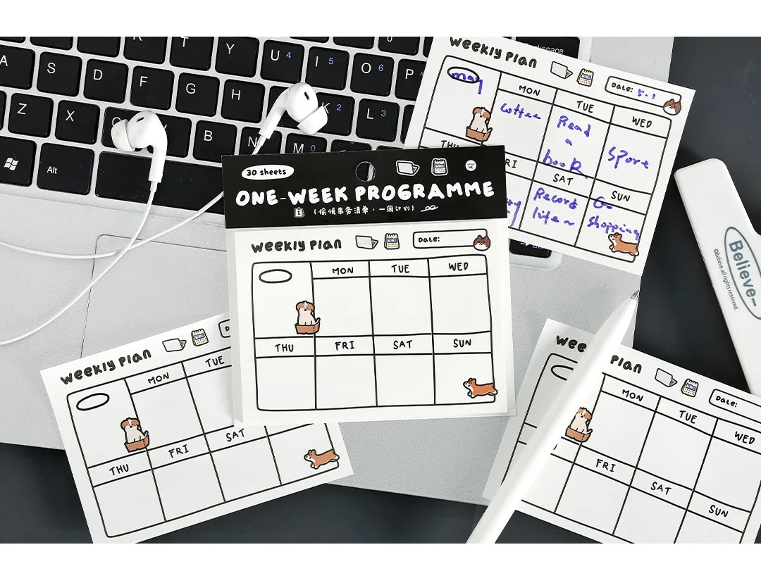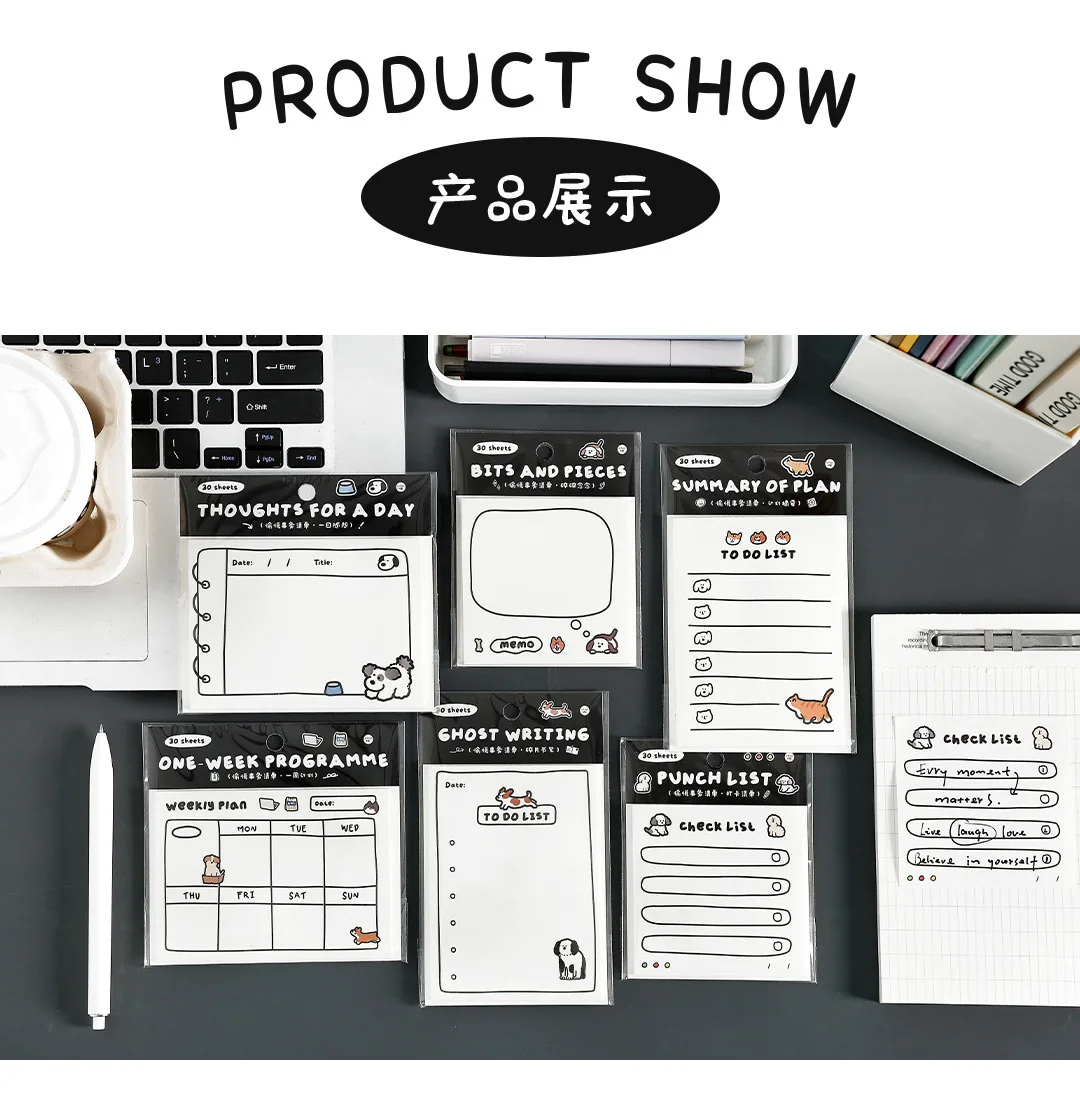 30sheets Memo Note Happy Business List Series Schedule Weekly Plan List Notes Check-in N Times Sticky Notes Stationery Note Pad