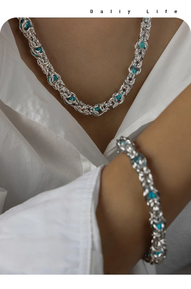 Liora High Quality Stainless Steel Irregularly Chain Necklace Bracelet For Women Men Charm Women's Two Pieces Jewelry Set Gifts
