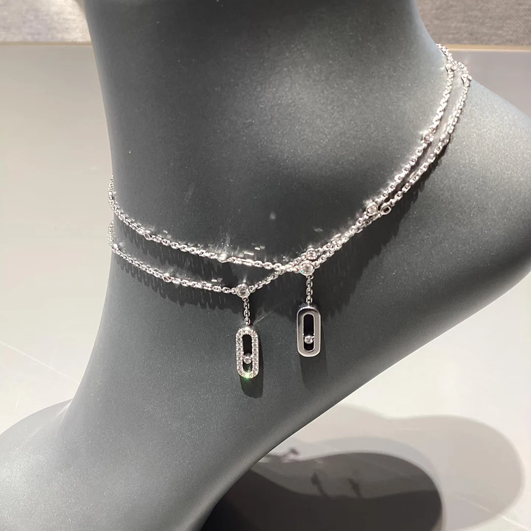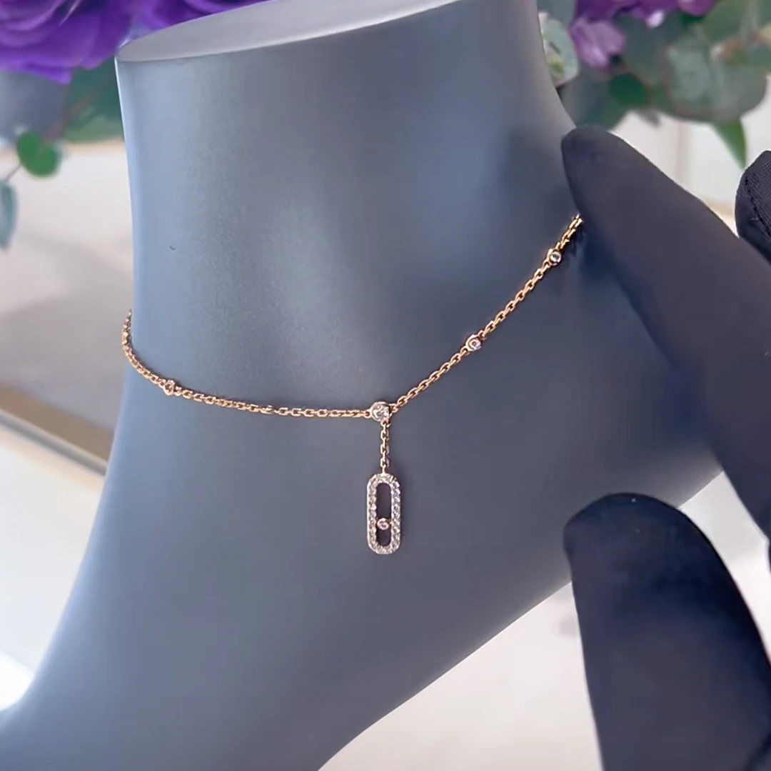 AUREVÉ - 925 sterling silver 18K gold classic women's diamond ankle chain with moving diamonds. Luxury jewelry gifts