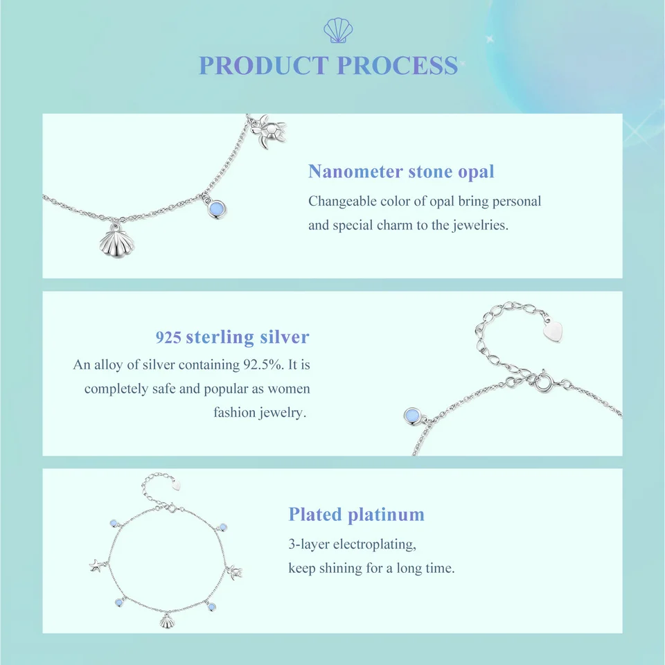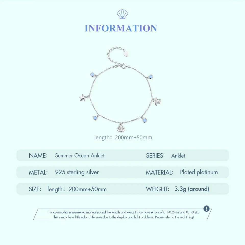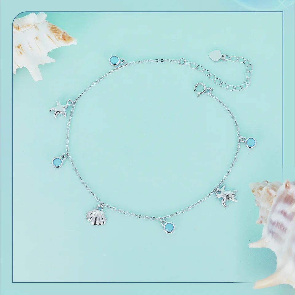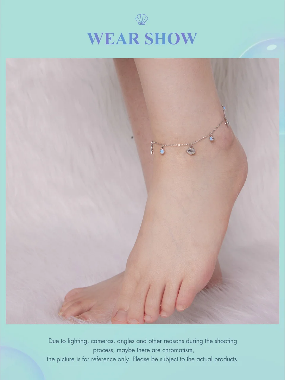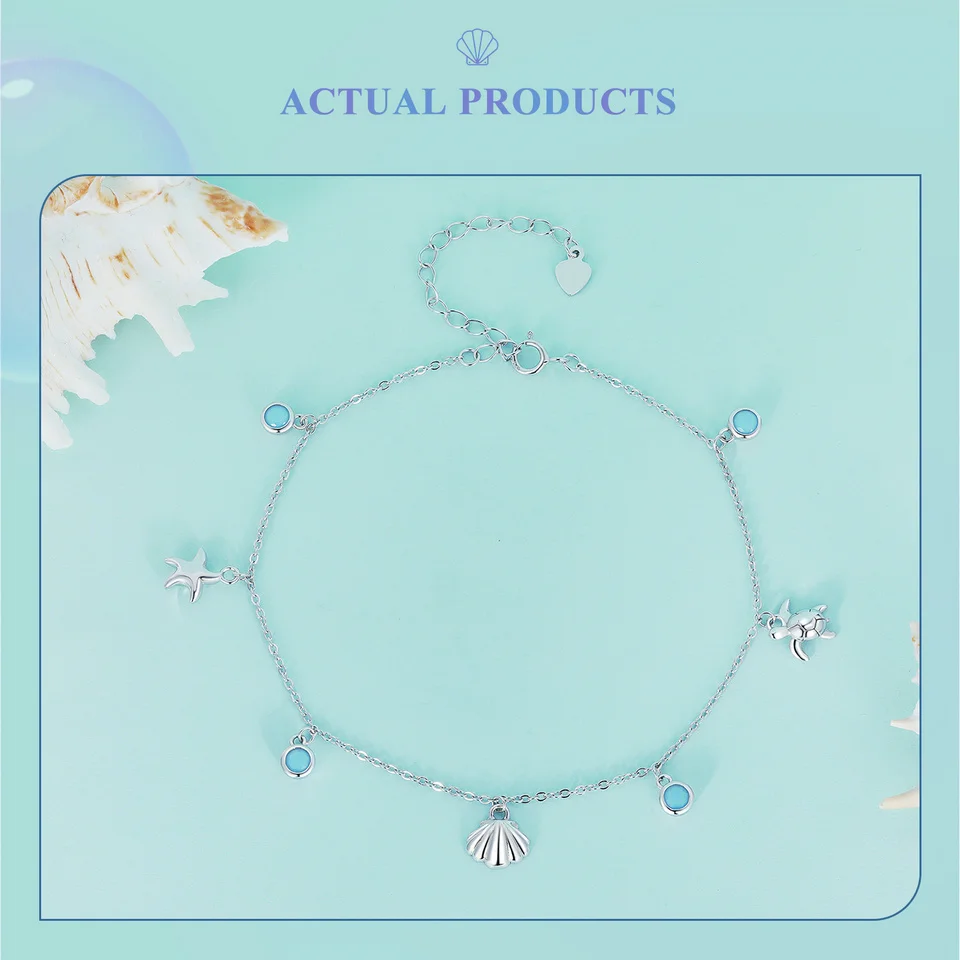 Coralé - WOSTU 925 Sterling Silver Seastar & Shell Charm Anklet Foot Jewelry for Women Summer Beach Jewelry Gift