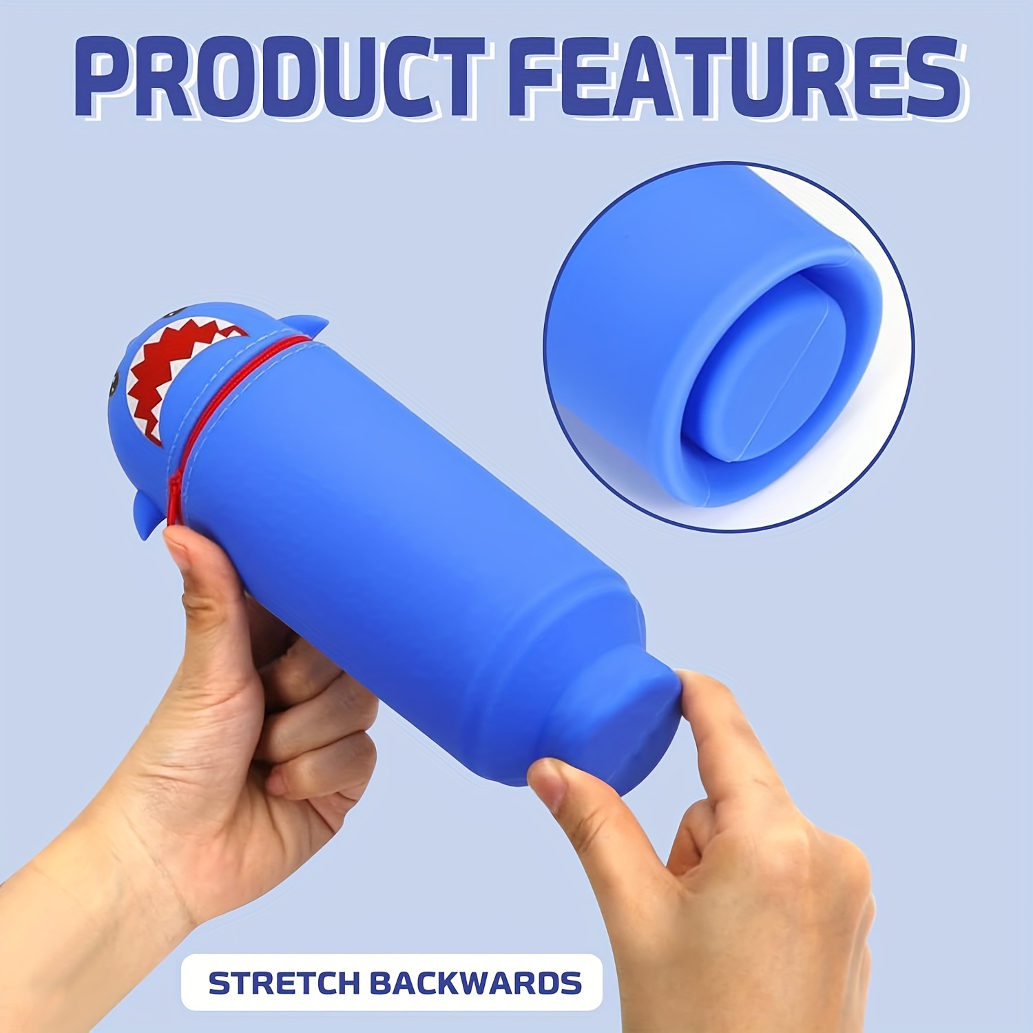 Large Capacity 2-in-1 Silicone Pencil Case & Pen Holder, Cute Animal Design Multifunctional Zippered Stationery Pouch
